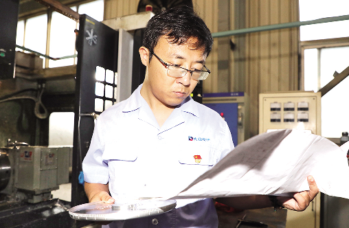 樊碧瑶正在看图纸琢磨工艺路线如何改进